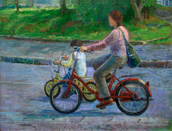 | 「サイクリングの親子」