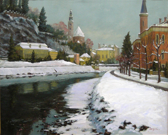 「ザルツアッハ川の雪景」 鈴木 敏彦
