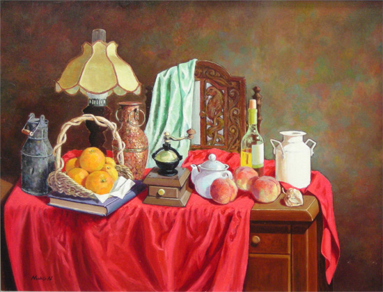 「朱い布のある静物」 新沼 尚久