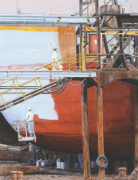 | 「赤い船底(ドックにて)」